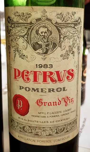 Les coraux des coquilles vont accompagner les deux bordeaux qui vont se livrer à un petit match où tantôt l’un, tantôt l’autre va sortir gagnant. Au début, le Pétrus 1983 paraît plus strict et guindé que le Château Palmer 1959 velouté et féminin. Et avec le corail, c’est le 1959 qui gagne nettement.