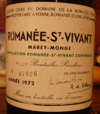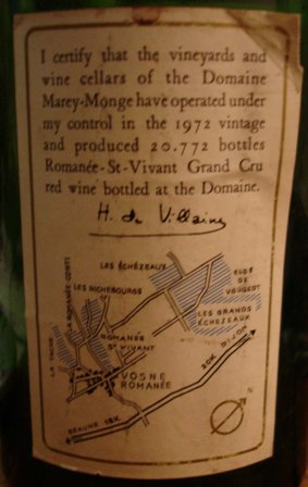 Voici l’étiquette et la contre étiquette de cette Romanée Saint-Vivant Marey-Monge Domaine de la Romanée Conti 1972.
