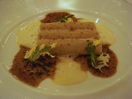 Macaronis farcis, truffe noire, artichaut et foie gras de canard, gratinés au vieux parmesan.