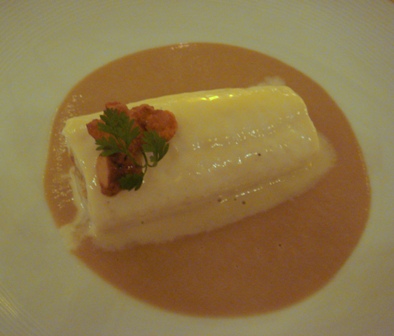 Mousseline de chou-fleur, gelée d’oignon rouge au Xérès et écume de haddock,