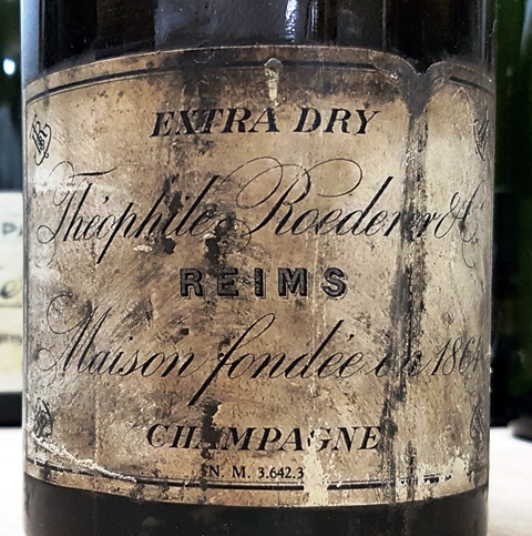Champagne Théophile Roederer Extra Dry which means a sweet champagne, very probably from the twenties