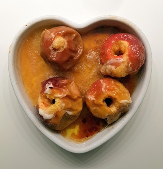 Le dessert de pommes au four ne peut se goûter que lorsque le vin est fini et la gourmandise nous pousse à l’accompagner par le marc de rosé d’Ott 1929 toujours aussi éblouissant et déroutant, car il nous mène sur des pistes qu’aucun autre marc n’explore.