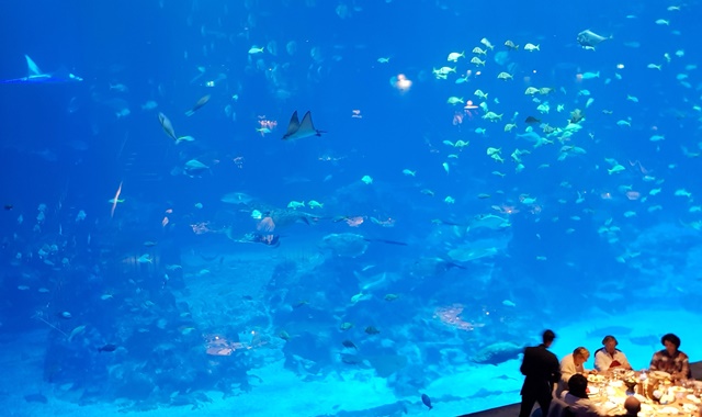 Tour du Monde – Singapour – dîner dans l’aquariumvendredi, 24 novembre 2017 dans l’immense parking, on ne rigole pas sur le prix des amendes ! je ne me lasse pas de cette vue