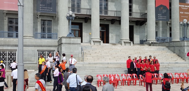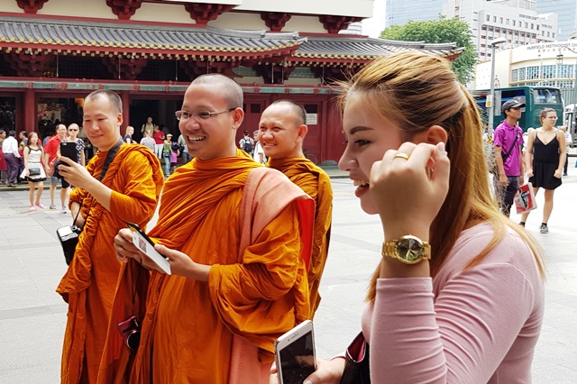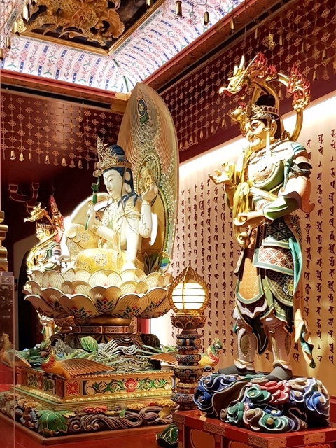 Tour du monde – Singapour – quartier chinoissamedi, 25 novembre 2017 quelques vues de la ville dont le parlement le quartier chinois une femme pose ses mains sur une boule pour capter l’énergie du bouddha une poubelle personnalisée rires devant un automate qui dit la bonne aventure