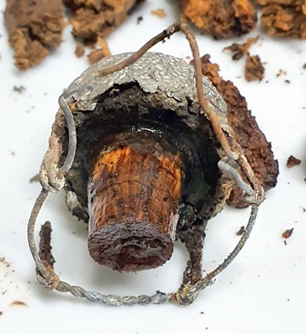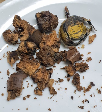 Le Corton Clos du Roi L.A. Montoy 1929 a lui aussi un bouchon qui vient en miettes. Le nez est beaucoup plus prometteur. Le Champagne Krug Private Cuvée que j’estime des années 50 a un bouchon très sale, comme les autres, et qui se lève instantanément tant il a rétréci. L’odeur est celle d’un champagne ancien mais là aussi je ne pense pas devoir ouvrir une bouteille de remplacement.