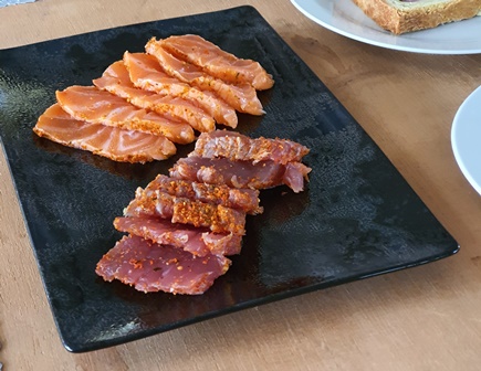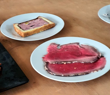 Ma collaboratrice a fait des emplettes, saumon cru et thon cru, rillette, pâté en croûte, viande de bœuf froide en fines tranches, divers fromages et tarte aux pommes. N’ayant aucun talent pour la cuisine il faut faire simple. Ma femme a ajouté dans ma musette un foie gras mi- cuit.