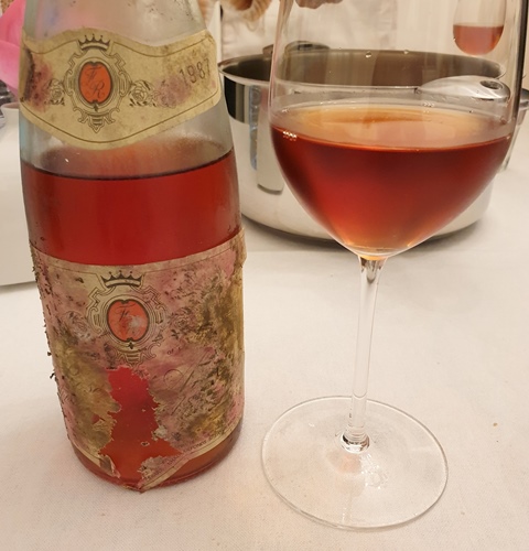 Je ne m’attends à rien, prêt à ouvrir un rouge si ce rosé ne convient pas. A ma grande surprise, ce rosé cohérent ne montre aucun signe d’âge. Il est riche et large et c’est seulement au niveau du finale que l’on ressent qu’il est court. Il accompagne le couscous sans aucun problème. Qu’un rosé se comporte aussi bien à 32 ans est une très heureuse surprise.