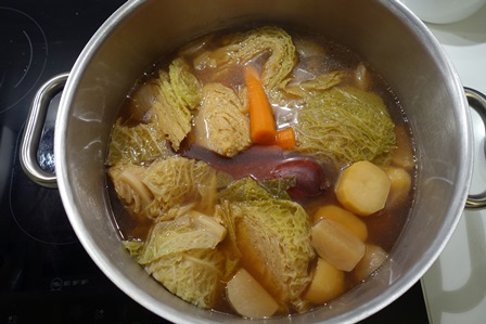Un pot au feu au chou, avec des navets, pommes de terre, carottes et une saucisse de Morteau, c’est pour moi le chemin du paradis. La logique voudrait que je choisisse un vin blanc du Jura, mais j’ai envie d’essayer une bouteille que j’ai acquise il y a bien longtemps, un Montrachet Nicolas 1976. La bouteille est belle, la couleur du vin vue à travers le verre de la bouteille est belle et jeune et le niveau est superbe. Cette bouteille me tente.