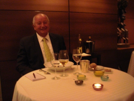 Une société financière invite des clients et prospects. Le président est un gourmet et n’envisage que le meilleur : buffet créé par Guy Savoy, vins présentés par 1855 en présence de quelques vignerons dont Alexandre de Lur Saluces. On ne résiste pas à de tels arguments. Mais je ne serai pas le seul, car une foule immense se presse sur le lieu de ce cocktail. Il est quasiment impossible de s’approcher des buffets regorgeant de subtiles nourritures car une foule même distinguée reste toujours une foule. Je demande alors à Guy Savoy qui veut retourner dans ses bases : « puis-je venir dîner ? ». La réservation est vite prise. Avant de quitter cette manifestation de prestige, je bois un délicieux champagne rosé Billecart-Salmon, puis Château Mouton-Rothschild 2001 qui semble s’épanouir, un Hermitage La Chapelle Jaboulet 1998 qui est très plaisant dans les conditions dans lesquelles je le bois. Je vais maintenant aller goûter le talent de Guy Savoy dans le calme feutré de sa belle salle à manger.
