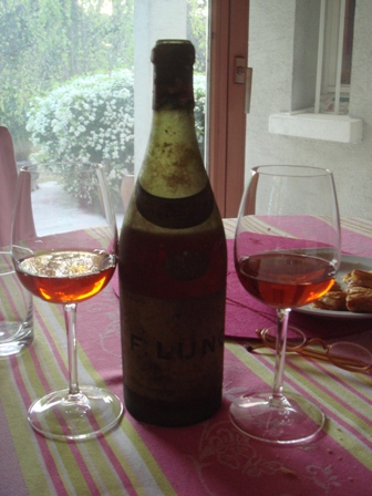 Je sers le vin de Frédéric Lung 1940, et, oh surprise, c’est un rosé. Lung, à cette époque, faisait les trois couleurs. La robe est magnifique de présence, riche et séduisante, le nez est juste banal. En bouche, le vin est phénoménal. Je dis bien phénoménal. Ce vin est complètement immense. A mille coudées au dessus du rosé de Mouton de 1936, qui fut tant apprécié à Yquem. On en jouit de façon totale, transporté que l’on est avec ce vin dans des dimensions irréelles. Il est impossible de le décrire. Je hasarde que cela me fait penser à des tranches de citrouille que l’on poêlerait. Mais ce n’est qu’un aspect au milieu de mille. Ma fille signale à juste titre, avec les trois gouttes qu’elle boit, que c’est un rosé authentique. Et je me dis qu’il serait impossible de faire comprendre que ce vin est sublime à quelqu’un qui ne le boit pas.