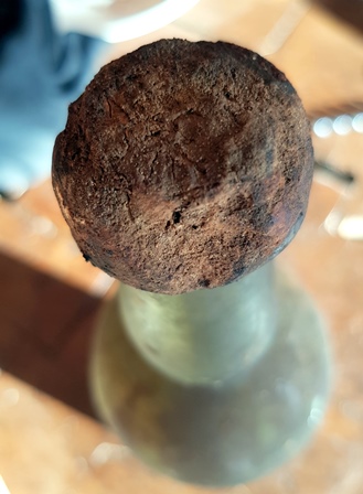 le vin de Chypre 1869 a une cassure de verre sur le goulot qui doit dater de plus d’un siècle