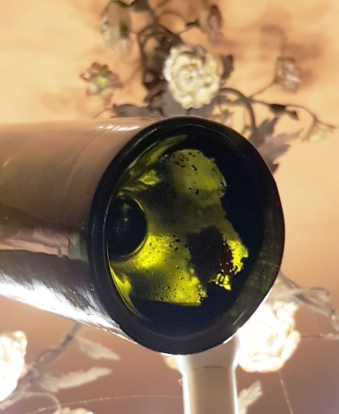 La bouteille de Chypre 1869 qui a perdu près de la moitié de son contenu a sur le disque de contact entre la surface et le verre une myriade de bulles blanches qui sont franchement peu engageantes. Mais il faut savoir que j’ai choisi la plus blessée de toutes les bouteilles. Le bouchon est recouvert d’un énorme chapeau de cire très légère qui se découpe au couteau. Le bouchon ne fait pas deux centimètres de longueur et comme souvent avec ce type de vins, il s’est twisté, le bas du bouchon n’ayant rien d’horizontal. Le bouchon sent le vinaigre et le vin dans la bouteille sent le vinaigre. Ça me paraît mal parti.