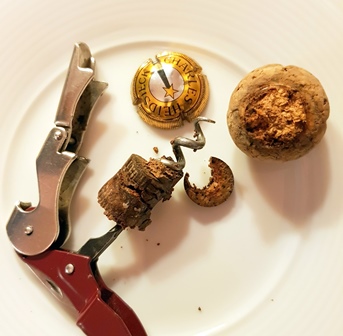 Nous rentrons à la maison et à 17 heures j’ouvre les bouteilles. La capsule du vin bordelais est bleue, d’un bleu de libellule adouci par les ans. Et sur le haut de la capsule il y a une ancre de marine sur laquelle repose une grappe de raisin. Rien d’autre n’est visible. Fort classiquement le bouchon vient en miettes car il y a au milieu du goulot une surépaisseur qui étrangle le bouchon. On doit donc déchirer le bouchon pour qu’il s’extirpe. Même en miettes on voit que la qualité du liège est très belle. Le niveau dans la bouteille est à mi- épaule. Lorsque je sens, je suis surpris qu’il y ait un fruit rouge aussi généreux. La promesse est belle aussi est-ce opportun de laisser la bouteille tranquille dans une atmosphère assez fraîche.