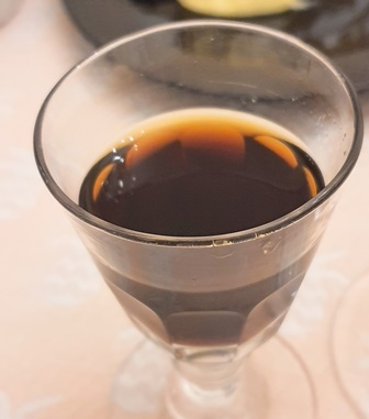 Parmi les fromages qui font la suite du repas, c’est un Sainte Maure qui s’accorde le mieux avec le vin roumain. Mon choix de vin avait été influencé par le fait que de dessert soit une mangue coupée en dés. L’accord se trouve bien sûr malgré le fait que la mangue ne soit pas tonitruante. J’ai alors l’idée de servir le fond de la bouteille du Bastor Lamontagne 1929, qui permet de faire deux verres, pour ma nièce et moi. Et c’est ainsi qu’on se rend compte de l’abîme qui sépare les deux vins liquoreux. Le Cotnari Grasa nous plaisait et le sauternes nous projette dans la transcendance. Il n’est pas mauvais de faire ce type de comparaison qui éclaire la vision sur un vin fort agréable mais simple. Ma nièce a été subjuguée par la complexité aromatique du sauternes de 92 ans.