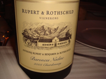 A 22 heures, mon estomac crie famine et je serais prêt à chaparder sur les tables voisines, car notre table est oubliée par un service débordé et approximatif malgré son envie de bien faire et une belle générosité. Sur notre table, des vins de l’écurie Rothschild, un blanc d’Afrique du Sud surpuissant Chardonnay 2005 Rupert et Rothschild et un Merle blanc de Château Clarke 2006 beaucoup trop vert ne peuvent apaiser mon attente.