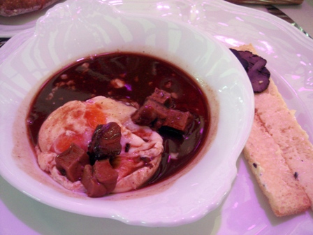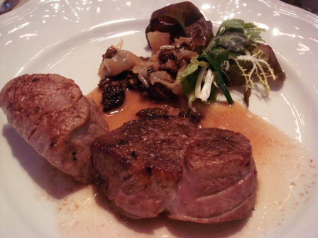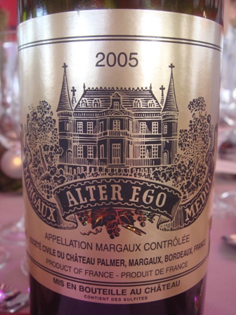 L’Alter Ego de Château Palmer 2005 est servi en même temps que le Château Palmer 2005. Les deux vins sont dans leur folle jeunesse. On sent que le Palmer connaîtra un avenir brillant lorsqu’il calmera un peu sa fougue de mustang. L’écart avec le second vin n’est pas aussi grand que ce que je croyais, l’Alter Ego s’en tirant remarquablement bien. Ces deux vins puissants sont délicieux sur le veau très tendre.