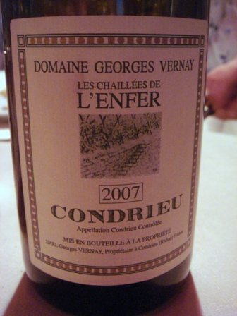 Je suis beaucoup moins convaincu par le Condrieu Les Chaillées de l’Enfer domaine Georges Vernay 2007 présenté élégamment par Christine Vernay, car ce vin qui eût été beau sur le veau est inadapté au fromage de chèvre léché de miel. Il se forme un désagréable perlant créé par le fromage, donnant l’impression qu’un comprimé effervescent est posé sur la langue. On revient donc au Palmer 1982 qui charme la fin du repas. Sur les tickets remis à l’entrée pour la tombola, Olivier Decelle a le numéro 68 et j’ai le numéro 69. Le truculent chef italien qui procède au tirage inscrit sur le tableau à la craie : 68. Olivier est attentif. Puis le chef écrit « +1 ». J’ai gagné ! Et pas n’importe quoi : un magnum de Château Palmer 2005. Dans la foule j’entends un brouhaha de certains amis qui disent : « c’est injuste, pourquoi lui, il a déjà tant de vins ». Je m’agrippe à mon lot. Ça fait tellement de bien de gagner pour une fois.