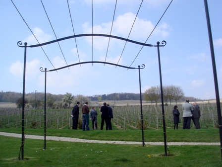 Après la séance studieuse, nous devisons devant les vignes de ce beau champagne.