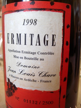 Ermitage Cuvée Cathelin Jean Louis Chave 1998 que j’ai apporté (venant du dîner de la veille au restaurant Laurent)