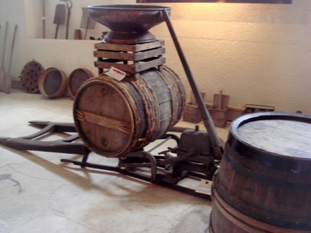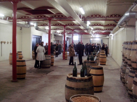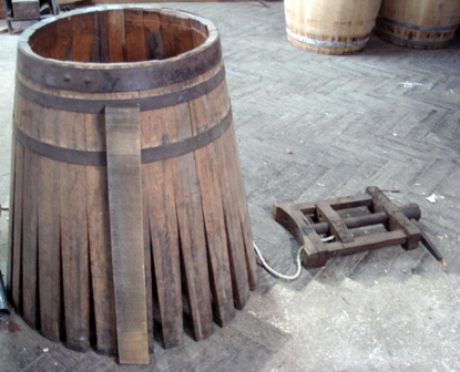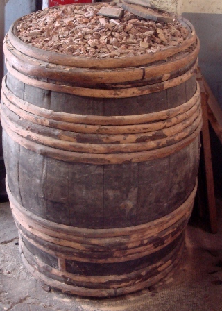 Passage obligatoire par la tonnellerie. Le tonneau couvert de copeaux, aux arceaux entièrement en bois, est plus que centenaire.