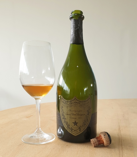 De passage à Paris pour un voyage dans les vignobles français elle a souhaité me rencontrer. Pourquoi ne pas le faire dans ma cave autour d’un petit pique-nique « sur le pouce ». J’ai prévu un peu de caviar, du foie gras, des fromages et un cake au citron. Après la visite de cave j’ouvre un Champagne Dom Pérignon 1973. Le bouchon sort aisément, sans le moindre pschitt. La couleur est plutôt ambrée et le pétillant est presque indicible. Au premier contact le vin fait plus vieux que son âge. Il est rond, ensoleillé, mais plutôt vieux. En fait il a besoin de s’épanouir dans le verre car très rapidement on ne sent plus aucune trace de fatigue ni d’âge et l’on a un beau vin plus qu’un beau champagne, fait de jolis fruits dorés par le soleil. Il cohabite bien avec le caviar mais on aurait aimé un peu plus de vigueur, il est parfait avec le foie gras, compagnon idéal et je suis heureux qu’il ait vibré sur le camembert, car c’est le signe de son adaptabilité. Son acidité, sa vigueur se sont développées au fil du temps, montrant un champagne d’une rare énergie.