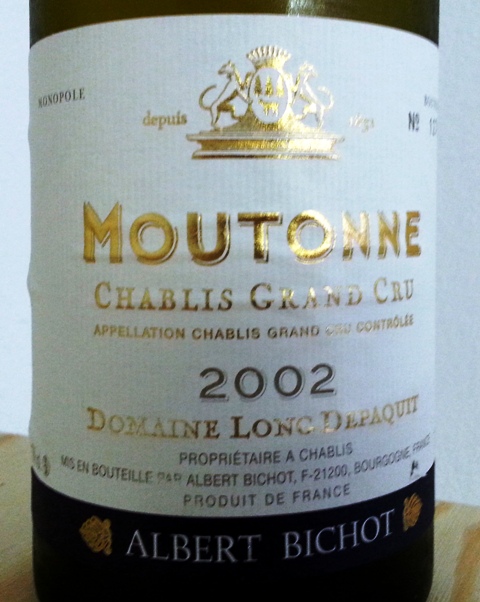 Des amis amateurs de vins et de cuisine sont venus nous rejoindre pour un week-end prolongé autour du 15 août. Le thème du dîner, qui est apparu presque spontanément, c’est l’année 2002. Il restait du Champagne Les Chétillons Pierre Péters magnum 2002 et l’idée qui vient est de l’associer avec un Chablis Grand Cru Moutonne Long-Dépaquit Albert Bichot 2002 sur un fromage de tête.