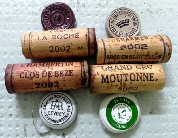 C’est sur un poulet que vont apparaître deux vins que je chéris et que j’ai voulu offrir à mes amis. Le Clos de la Roche Dujac 2002 a un nez riche et imposant. S’il était bu tout seul, on le trouverait splendide car il est joliment fruité, de belle consistance, et de belle longueur. En l’imaginant seul, je lui trouve beaucoup de talent et d’allant.