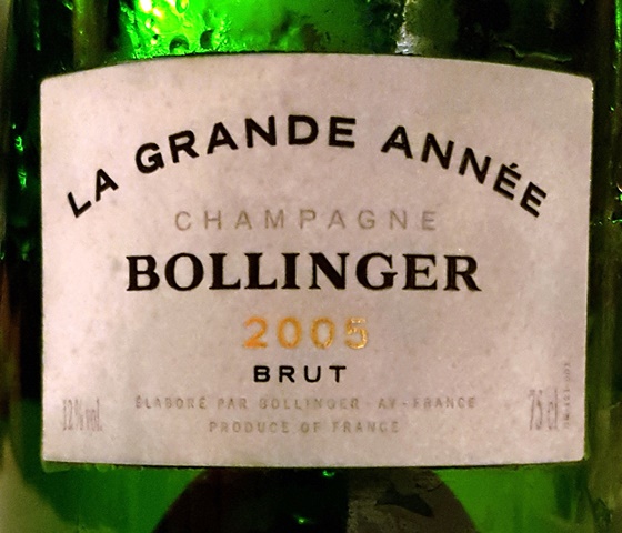 L’apéritif est rituel, gressins, jambon italien tranché sur l’instant pour nous, petites olives dénoyautées très goûteuses. Le Champagne Bollinger Grande Année 2005 a un parfum très noble, plus noble que celui du Comtes de Champagne 2005 bu ce midi. En bouche le vin est expressif et grand mais il est loin d’atteindre la largeur du vin du déjeuner. Il est droit, un peu strict et manque un peu de longueur. Et ce qui m’étonne c’est que je le trouve moins glorieux que le même Bollinger bu il y a peu dans ce même restaurant. Il est évident cependant que ce champagne est agréable et grand mais pas au niveau dont j’avais la mémoire.